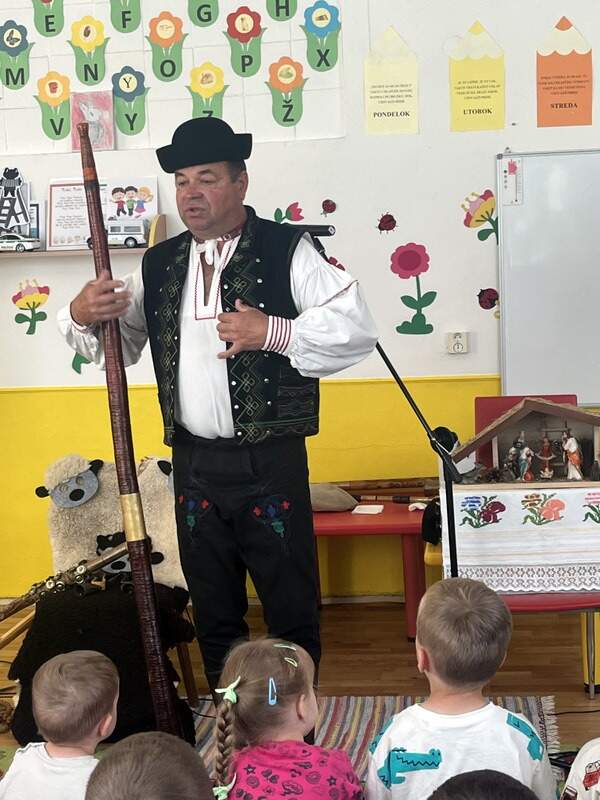 Dnes, 16. mája, sme absolvovali výchovný koncert plný hudby, spevu, smiechu, tanca a dobrej nálady. Pripravil ho pre nás folklorista, pán Stanislav Gaľa, člen folklórneho súboru Šarišan. Predviedol nám netradičné hudobné nástroje – gajdy, fujaru, ďrumbľu, pastiersky roh, okarínu, ústnu harmoniku, gajdicu a rôzne druhy píšťaliek.