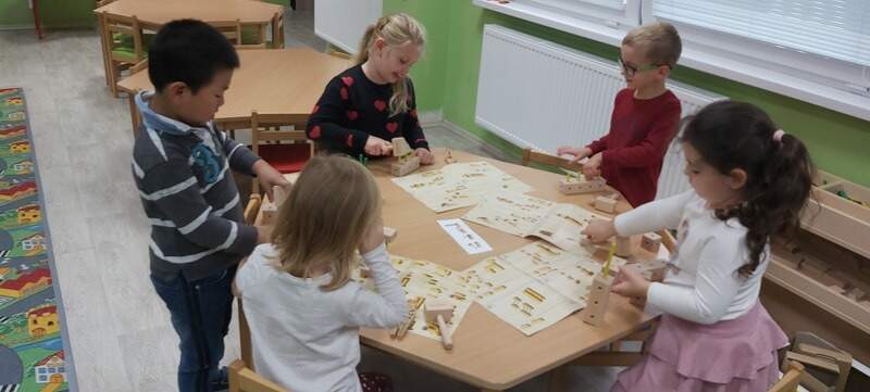 Drevená stavebnica pre deti v triede Včielka vytvára podmienky k technickým činnostiam a k hrám s náradím.
